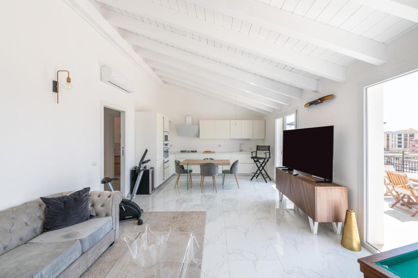 Two-Bedroom Superior Apartment. This apartment features a hot tub. Boasting a private entrance, this air-conditioned apartment features a kitchen, 2 bedrooms and 1 bathroom with a shower and a hairdryer. In the well-equipped kitchen, guests will find a dishwasher, kitchenware, an oven and a microwave. Featuring a terrace with city views, this apartment also features a washing machine and a TV with streaming services. The unit has 2 beds.