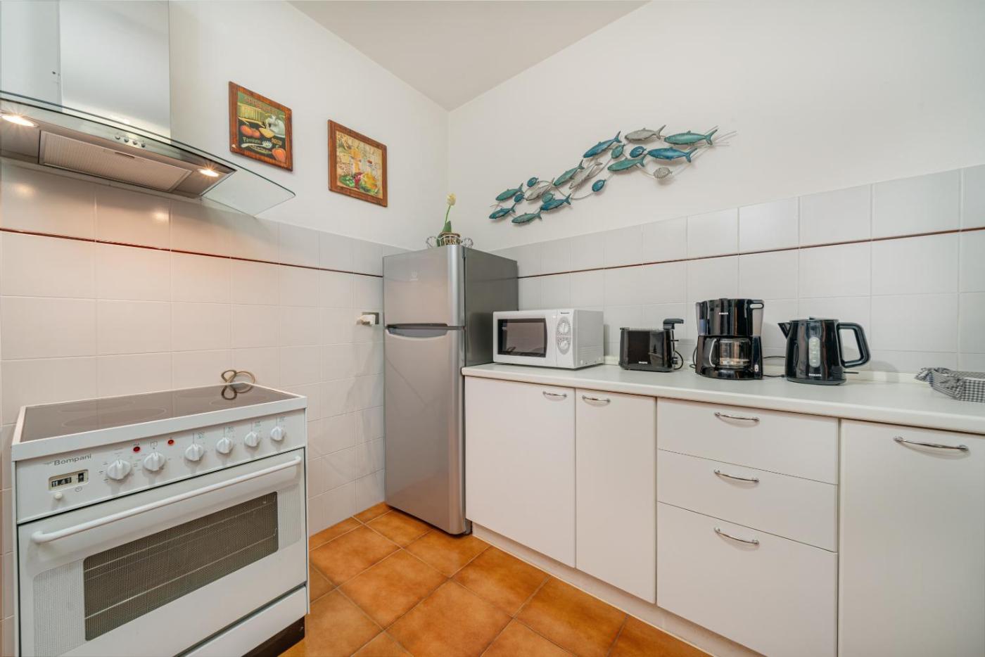 Apartment. This apartment comprises 1 living room, 1 separate bedroom and 1 bathroom with a hairdryer. Meals can be prepared in the well-fitted kitchen, which comes with a stovetop, a refrigerator, an oven and a microwave. The apartment provides a washing machine, a coffee machine, heating and a TV. The unit offers 2 beds.